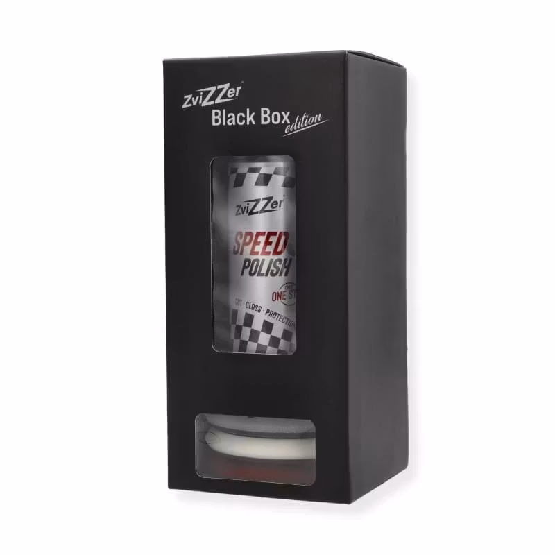 Zvizzer Speed Polish Black Box Edition er et komplett ett-stegs poleringssett for deg som vil ha et moderne og effektivt system med få produkter. Settet kombinerer Zvizzer Speed Polish 750 ml med alle tre UFO Thermo Pads i 125 mm, slik at du kan justere cut og finish etter lakktilstand – uten å bytte polish.
